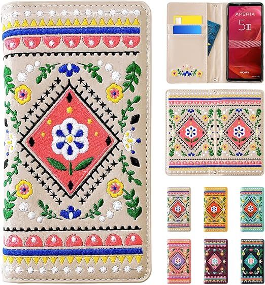 Xperia 5 IV SO-54C SOG09 A204SO 手帳型 ケース カバー 手帳型 ケース カバー SO-54Cケース SO-54Cカバー エクスペリア SO54C 【NB】 北欧 刺繍 グレージュ