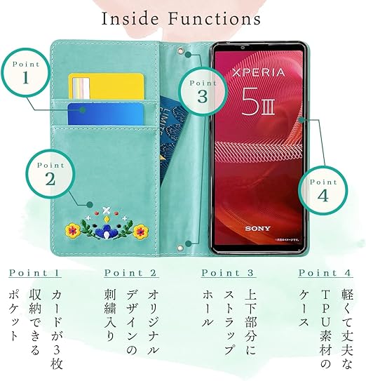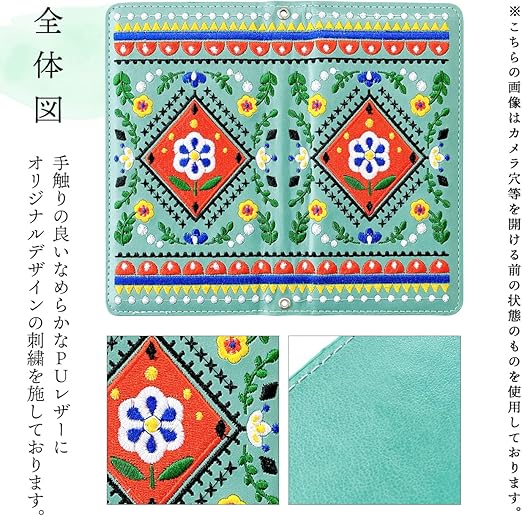 AQUOS R8 pro SH-51D 手帳型 ケース カバー 手帳型 ケース カバー SH-51Dケース SH-51Dカバー アクオス SH51D 【NB】 北欧 刺繍 ターコイズ