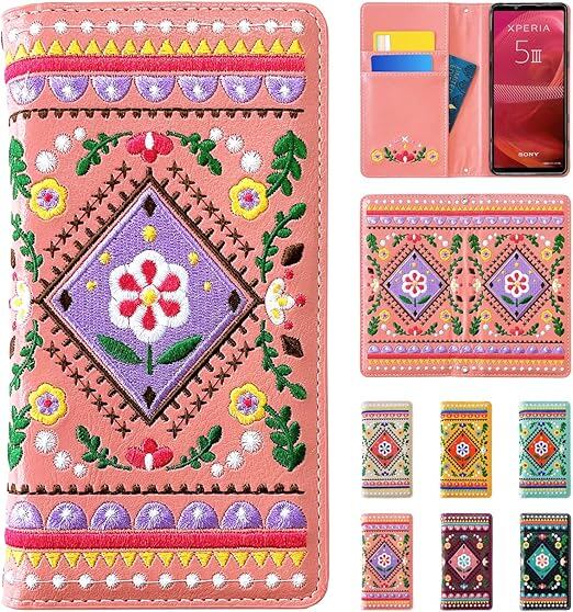 Xperia 5 V SO-53D SOG12 XQ-DE44 手帳型 ケース カバー 手帳型 ケース カバー SO-53Dケース SO-53Dカバー SOG12ケース SOG12カバー エクスペリア SO53D 【NB】 北欧 刺繍 ピンク