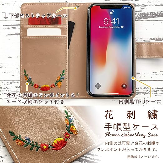 AQUOS sense 8 SH-54D SHG11 ケース カバー 手帳型ケース SH-54Dケース SH-54Dカバー SHG11ケース SHG11カバー アクオス sense8 SH54D 【NB】 花刺繍 アーモンドベージュ beige