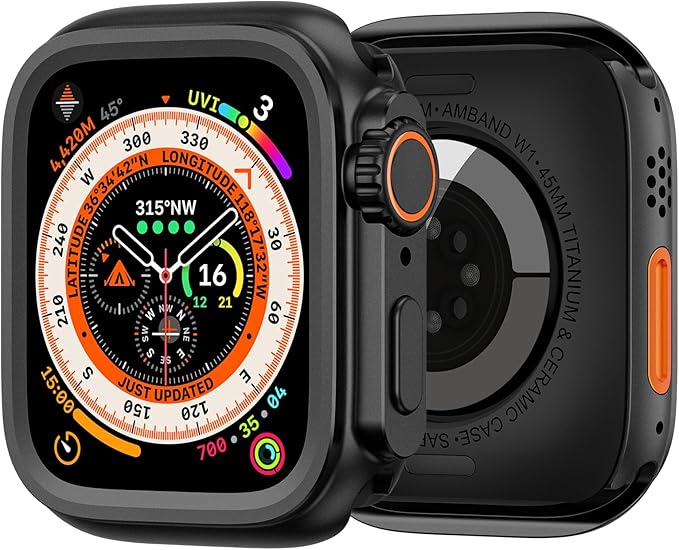 amBand 3 in 1 メタルケース Apple Watch Series 9/8/7 45mmに対応 数秒でUltra/Ultra2に変身でき アップグレード ウルトラの見た目 W1 保護カバー バンパー プロテクター 裏蓋付き ブラック