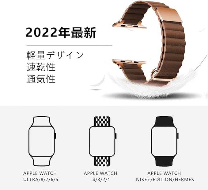 コンパチブル Apple Watch バンド レザーリンクバンド 速乾性 良い肌触り 強い磁力 マグネット式 ループバンド レザー 磁石 apple watch Ultra3/Ultra2/Ultra/10/9/8/7/6/5/4/3/2/1 38mm/40mm/41mm 42mm/44mm/45m/46mm/49mm 125mm〜210mmの手首対応 アップルウォッチバンド