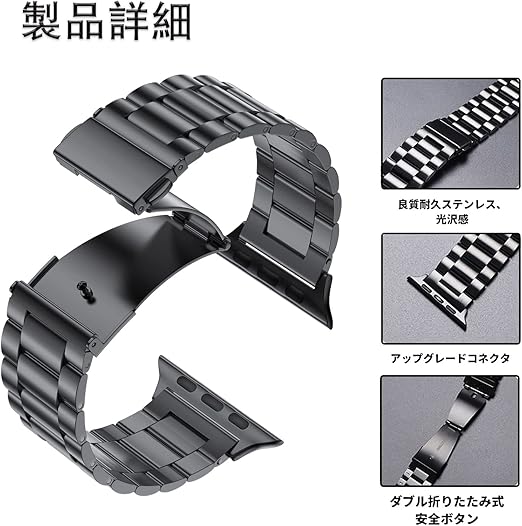 【金属ベルトならではの魅力】このアップルウォッチバンドは、高品質のステンレス鋼素材と優れた電気メッキプロセスを使用し、表面は滑らかで光沢があります。金属ベルトを取り付けた