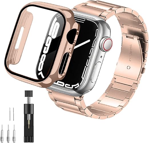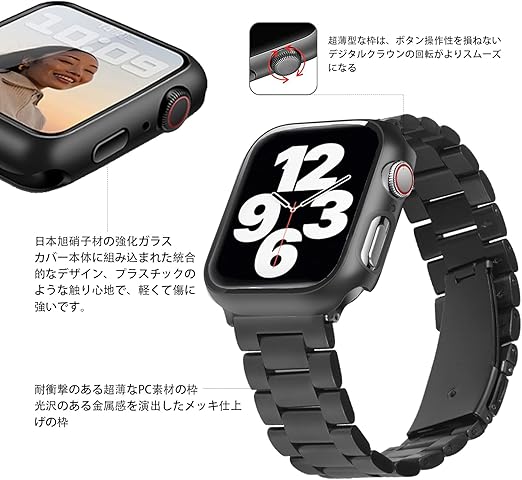 【対応機種】専用Apple Watch バンド ステンレス+専用Apple Watch 保護ケースです。ANYOI for バンド はあなたの素敵なApple Watchライフをサポートします。調整工具と調整説明書を付属してます。対応機種:Apple Watch Series 9/Series 8/Series 7 45mm。