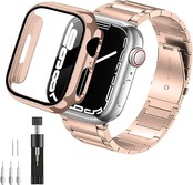 [ANYOI] 対応 コンパチブル Apple Watch バンド ステンレス製 45mm アップルウォッチ バンド保護ケース付き 交換ベルト Apple Watch 9/8/7 バンド アップルウォッチ9/8/7 バンド 対応 あっぷるうぉっち バンド 長さ調節器がついています 耐衝撃 男女通用(45mm,ローズゴールド