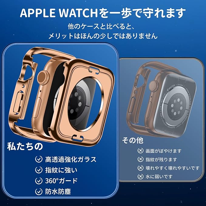 【360ど度防水】Apple Watchケース特殊加工による防水機能により、 手を洗う時はもちろん汗をかいた時、シャワーを浴びた時にもかかわらずにアップルウォッチをご使用できます。 ※アップルウォッチ本来の防水性能を向上させるものではありません。プールや海などの水場でのご使用時はアップルウォッチの説明に従い、スキューバダイビング、ウォータースキーなど、水圧が高くなったり、所定の水深より深く潜るようなアクティビティはしないでください。