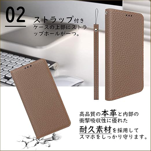 CLICSUN iPhone14 Pro ケース 高級牛本革ケース 手帳型 iPhone14 Pro カバー 本革 レザー アイフォン14 Pro カバー スタンド機能 ストラップ付き マグネット式 カードポケット ギフトボックス付き ブラウン