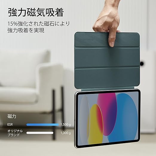 ESR iPad 10世代 ケース (10.9インチ、2022モデル)専用 強力マグネット吸着式 スリムな三つ折りスタンドケース 自動ウェイク/スリープ耐 久性保護 軽量 シルクのよう滑らか Reboundシリーズ グリーン