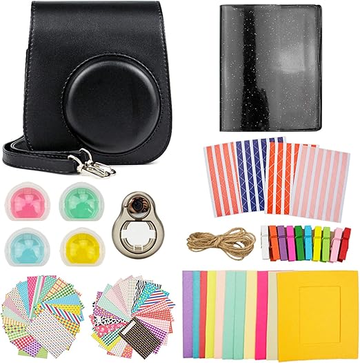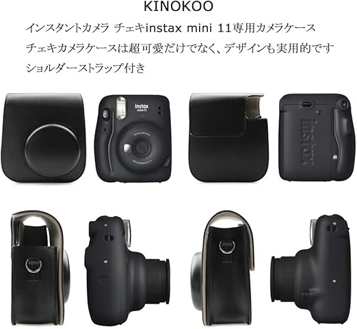 kinokoo Fujifilm チェキ instax mini 11 ケース instax mini 11 カメラケース アクセサリー 8点セットC(BK)