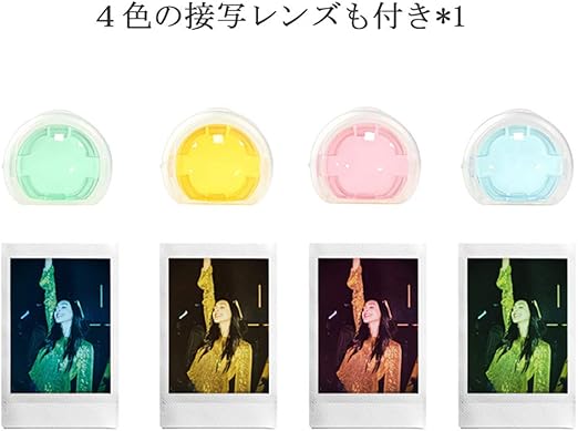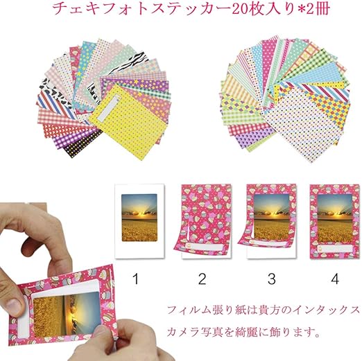 チェキカメラケース(PUレザー)*1、ショルダーストラップ*1、チェキ専用自撮り接写レンズ*1、チェキ専用カラーフィルター*4(ピンク、イエロー、浅いブルーと青みどり)、チェキフォトステッカー20枚入り*2、壁掛け式フォトフレームセット1(クリップと縄付き)、チェキ用アルバム *1、コーナーステッカ78枚入り*4