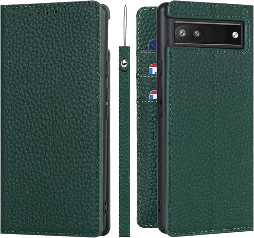 Pixel 6A ケース手帳型 Google Pixel 6A ケース Pelanty 牛革製品 本革レザー 財布型カバー Pixel6a カード収納 スタンド機能 内蔵マグネット 手作り柔らかい グーグル ピクセル 6A 携帯カバー ストラップ付 ヘッドフォンケーブル 耐衝撃 [6色選択] グリーン