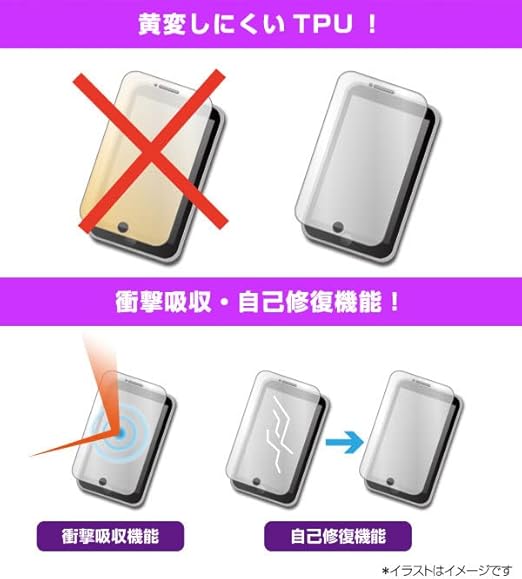 外光の反射を抑え、指紋がつきにくい表面処理。そして傷修復機能、衝撃吸収機能を備えております。