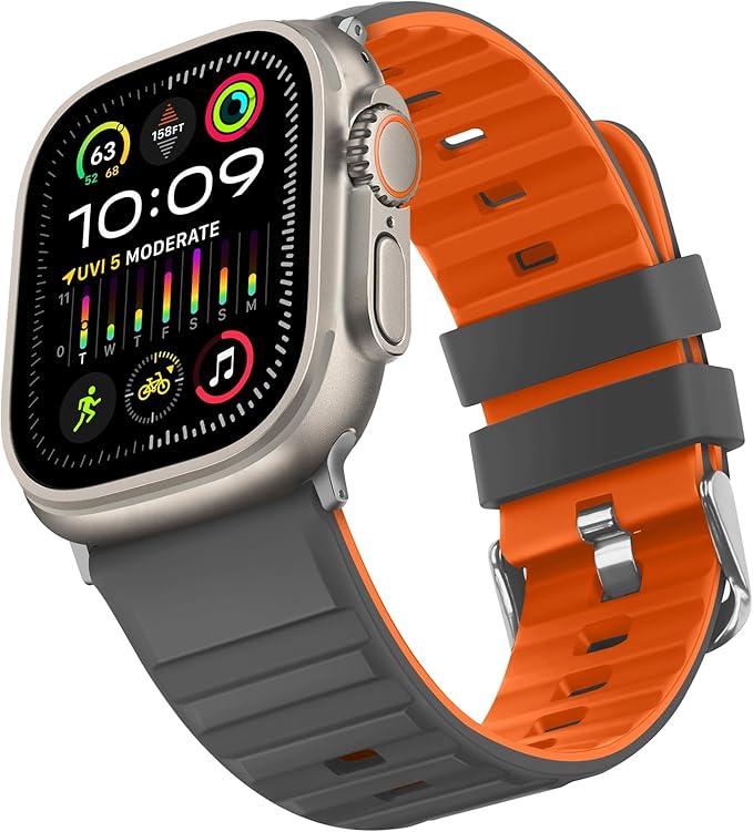 [Suphart] コンパチブル Apple Watch バンド49mm 46mm 45mm 44mm 42mm 柔らかいシリコン製通気性防水スポーツバンド に対応 Apple Watch Ultra 2 Ultra シリーズ 10 9 8 7 6 5 4 3 2 1 SE (グレー/オレンジ)