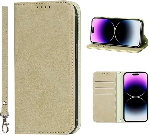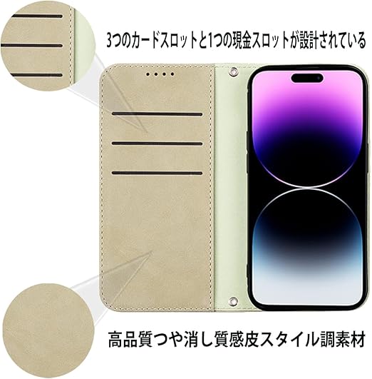 NanHou iPhone 14 Pro ケース 手帳型 つや消し レザー スタイル質感 カバー 手帳型 耐衝撃 保護カバー 内蔵マグネット 財布型 携帯カバー カードポケット スタンド機能 リストバンド iPhone 14Pro 手帳型 - ライトグリーン