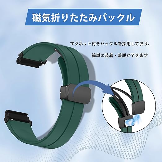 [RicYeel] 22mm QuickFit 磁気付き バンド GARMIN Fenix 8 47mm/Fenix E/Fenix 7/Fenix 6/Fenix 5 対応 シリコン クイックフィット マグネット付き 交換用バンド 柔らかい スポーツ 替えバンド Garmin Epix 2/Forerunner 965/Approach S70 47mm/S62/S60 用, グリーン a