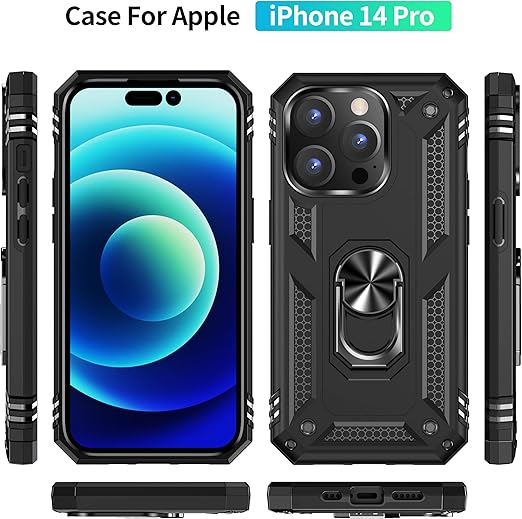 Cakublse iPhone14プロ iPhone14pro 用 ケース リング スタンド 耐衝撃 アイフォン14プロ アイホン14プロ iPhone14 iPhone アイフォン アイホン 14Pro 14プロ 14ぷろ 14 Pro プロ ぷろ ケース Case proケース スマホケース リング付き スタンド付きブラック 黑 a