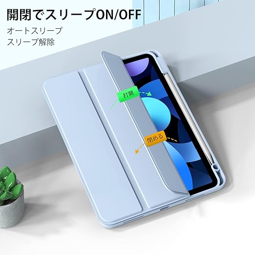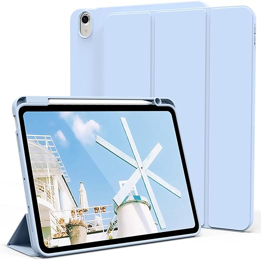 KenKe iPad Air 11インチ(M2) ケース 2024 iPad Air5/Air4 ケース 2022/2020 軽量 柔らかいシリコン TPU材質 ペン収納 iPad Air 第5/4世代 カバー 3段階折り畳み可 スタンド マグネット付き 自動スリープ機能 Apple Pencil 収納可能 iPad Air 5/4 10.9インチ に対応 (ライトブルー) a