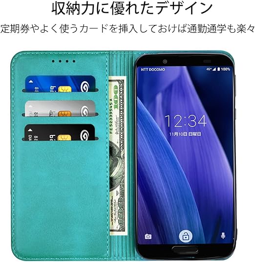AQUOS Sense3 ケース 手帳型 高質PUレザー Sense3 Lite カバー Sense3/Sense3 Lite SH-02M SHV45 通用ケース 耐衝撃 内蔵マグネット開閉式 ベルトなし スマホケース おしゃれ カードポケット スタンド機能 便利 スプラット同梱 携帯ケース(ターコイズ) a