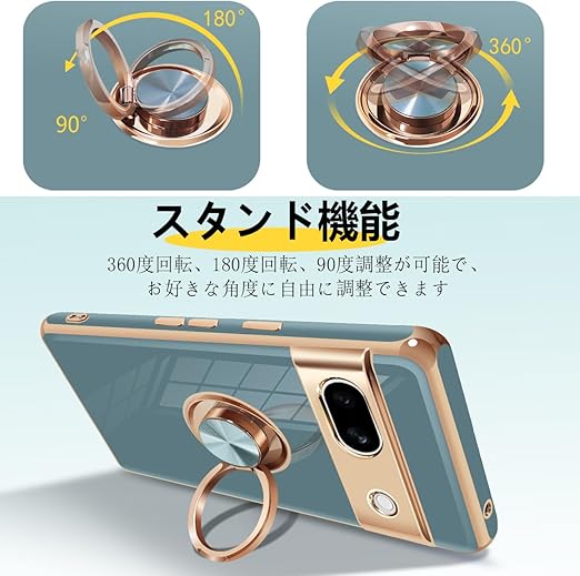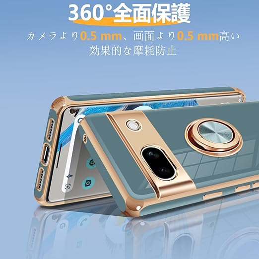 Google Pixel 8a ケース リング付き リング ピクセル8a カバー 米軍MIL規格 耐衝撃 メタリックな質感 磁気吸着 携帯カバー TPU 軽量 人気 スタンド機能 車載ホルダー対応 360°回転 黄変防止 指紋防止 (グレー) a
