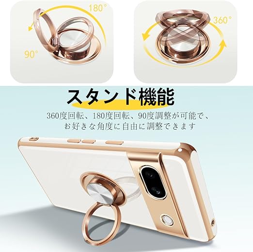 Google Pixel 8a ケース リング付き リング ピクセル8a カバー 米軍MIL規格 耐衝撃 メタリックな質感 磁気吸着 携帯カバー TPU 軽量 人気 スタンド機能 車載ホルダー対応 360°回転 黄変防止 指紋防止 (ホワイト) a