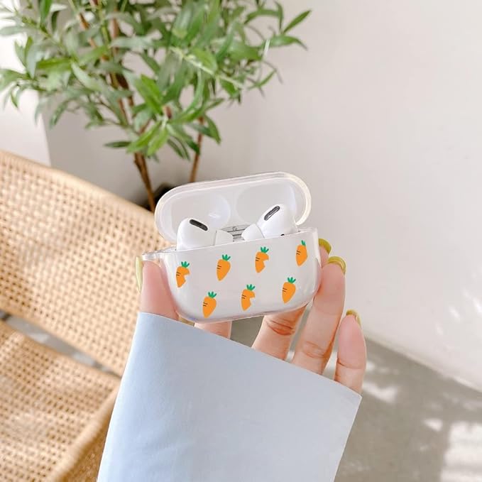 ONLYOU Airpods pro ケース おしゃれ 韓国 Airpods pro2 ケース かわいい PC にんじん キャロット シンプル クリア 透明 総柄 エアーポッズ プロ カバー レディース イヤホンケース カラビナ フック ハードケース (Airpodspro(第1/2世代) クリア) a