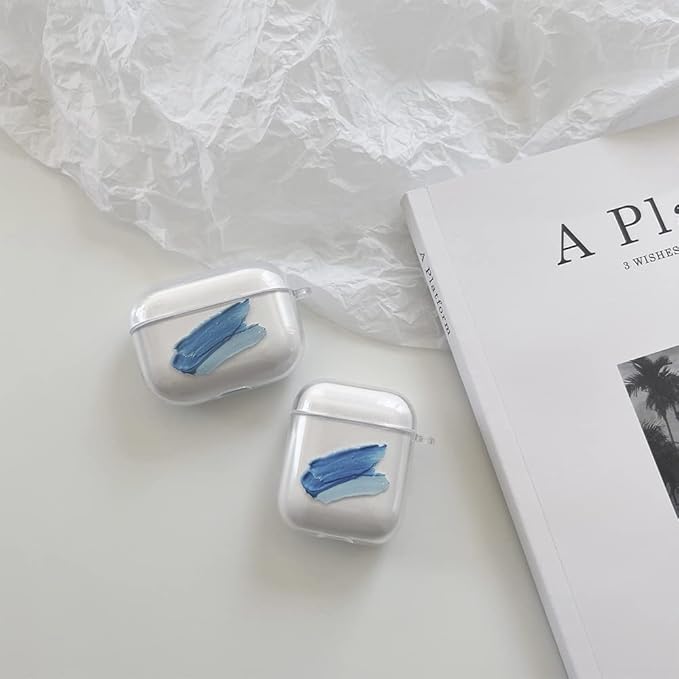 ONLYOU Airpods pro ケース おしゃれ 韓国 Airpods pro2 ケース かわいい TPU ペイント デザイン シンプル クリア 透明 エアーポッズ プロ カバー レディース お揃い イヤホンケース カラビナ フック (AirPodsPro (第1/2世代) ブルー) a