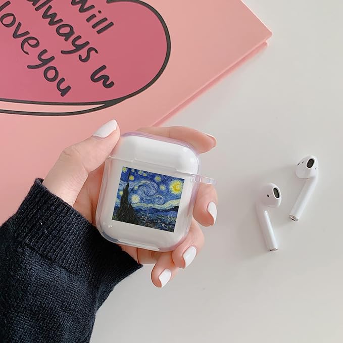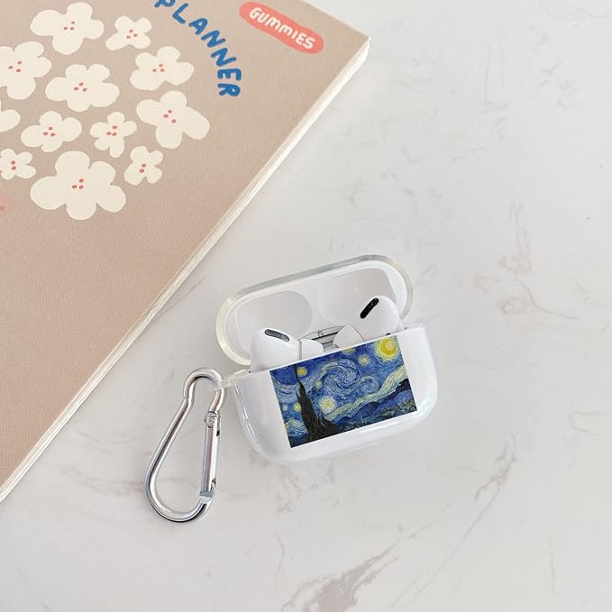 ONLYOU Airpods pro ケース おしゃれ 韓国 Airpods pro2 ケース かわいい tpu 絵画 デザイン ゴッホ 星月夜 風景 クリア 透明 デザイン エアーポッズ プロ カバー お揃い レディース メンズ (Airpods Pro) a