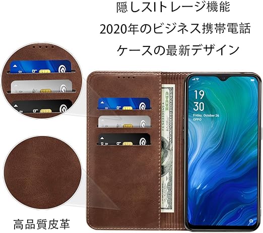 OPPO Reno A ケース 手帳型 高質PUレザー OPPO Reno A カバー Case 耐衝撃 皮革 内蔵マグネット開閉式 ベルトなし スマ2