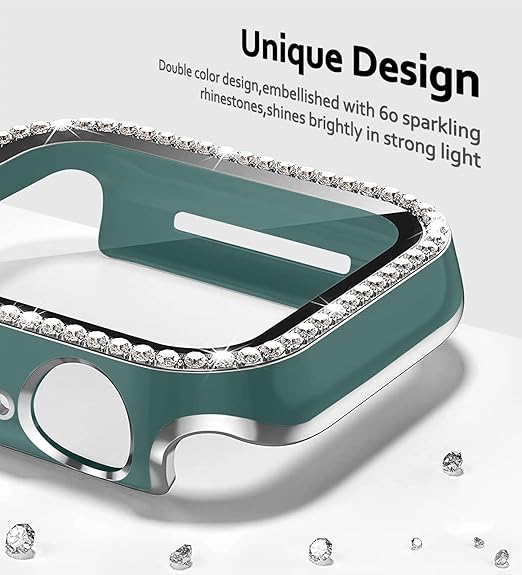 2パック キラキラ光るケース 内蔵強化ガラススクリーンプロテクター付き 保護ケースデュアルカラーコンパチブルApple Watch 40mm ハードPC ファッショナブル ダイアモンド 保護バンパー iWatchシリーズ 6 5 4、グリーンシルバー +グリーンローズゴールド a