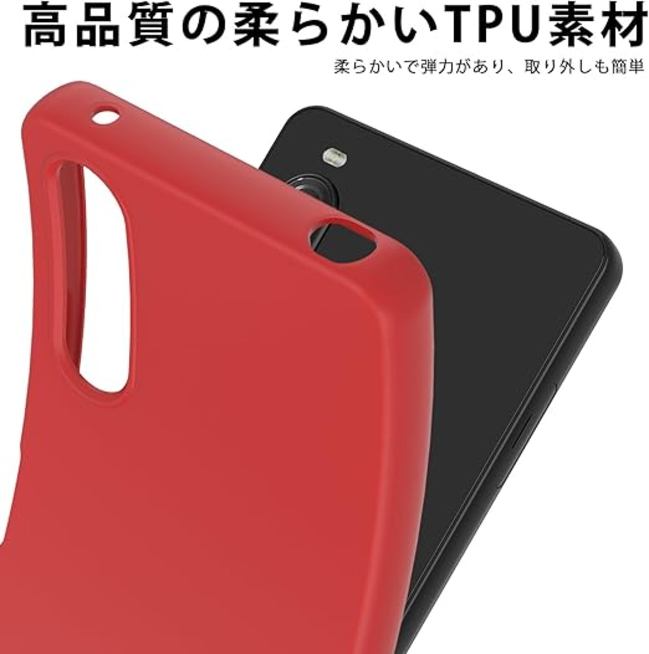 Xperia 10 V ケース シリコン 耐衝撃 柔軟 SO-52D | SOG11 カバー 人気 薄型 衝撃吸収 携帯カバー ストラップホール付き ワイヤレス充電 軽量 手触り良い 指紋防止 滑り防止 (赤)4-xp 10v-02 a