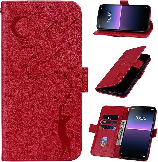 Xperia 10v ケース so-52d ケース スタンド機能 マグネット xperia 10v スマホケース カード収納 耐衝撃 えくすへりあ10v スマホケース 全面保護 ONETHEFUL xperia 10 v ケース 可愛い 猫柄 柔らかいTPU 適応 6.1インチ - 赤 a