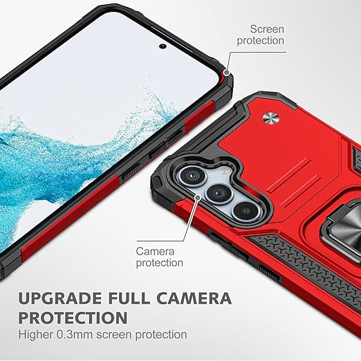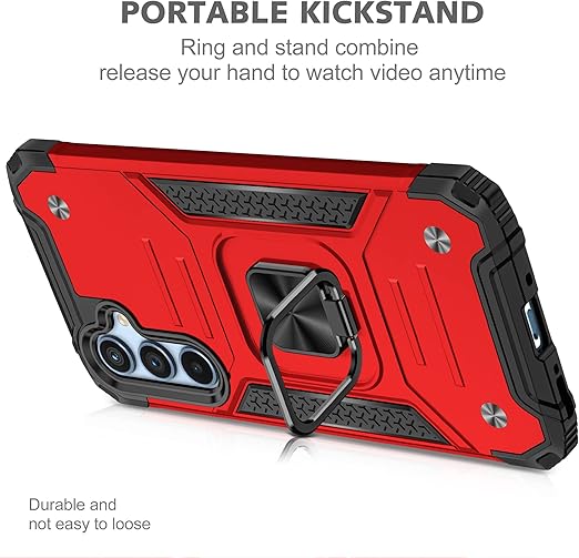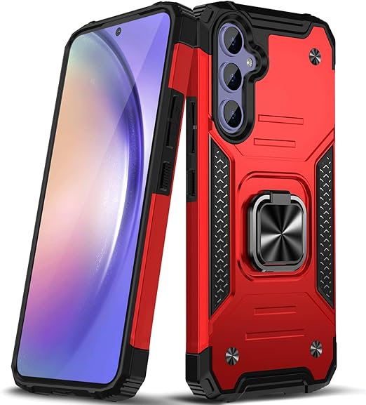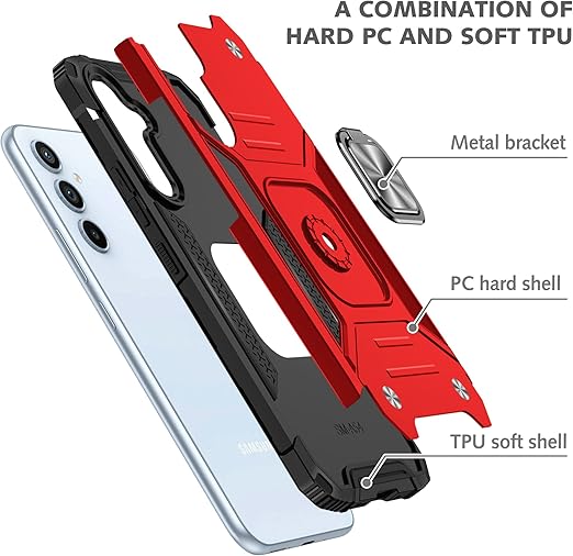 Galaxy A54 5G 用 ケース リング付き 耐衝撃 TPU クリア 薄型 軽量 携帯ガバー スタンド機能 車載ホルダー対応 二重構造 指紋防止 全面保護 米軍MIL規格 スクラブ カメラ保護 擦り傷防止 取り出し易い スクラッチ防止 着脱しやす[赤]KC65-169 a