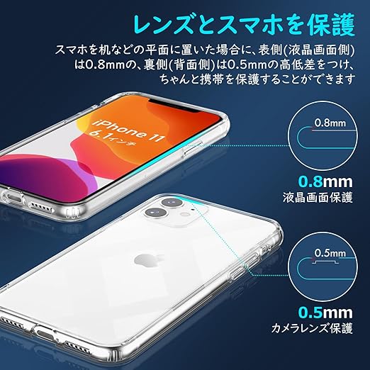 Xeokone iPhone11 ケース クリア MIL規格耐衝撃 耐衝撃 黄変防止 [ワイヤレス充電対応 ]『四隅滑り止 レンズ保護 滑り止め 軽い スレ傷防止〕[PC背面 + TPUバンパー 二層構造フィット感]アイフォン11透明 ケース 6.1インチ 対応 a