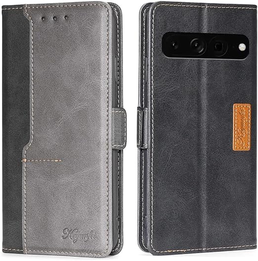 Yiunssy pixel7 Pro ケース 手帳型 google pixel 7 Pro ケース スタンド機能 カード収納 PUレザー 軽量 落下防止 衝撃吸収 全面保護 財布型 マグネット google pixel7 Pro 携帯カバー(ブラック+グレー) a