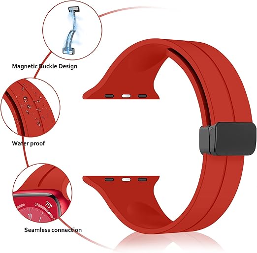 磁気バックルデザインウォッチバンドコンパチブル Apple Watch バンド 42mm 44mm 45mm 49mm、防水スポーツ調整可能で快適なソフトシリコンブレスレット iWatch Ultra シリーズ 8 7 6 5 4 3 2 1 SE 用 赤 a