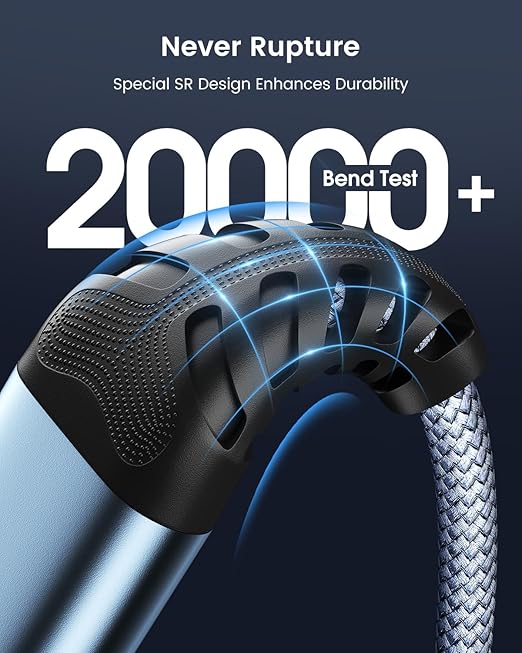 耐久性のあるデザイン:もつれのないナイロン編組により耐久性が向上し、20,000回以上の曲げに耐える