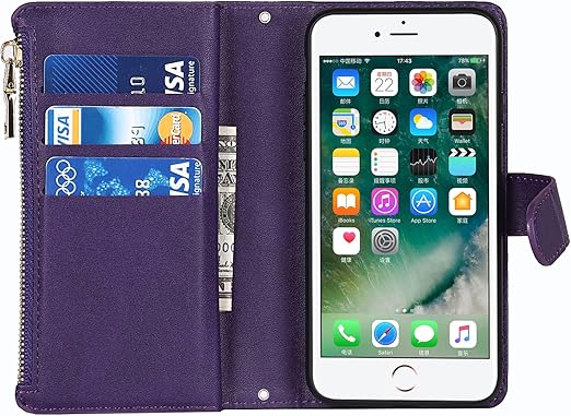 Eastwave アイフォン SE 2022 第3世代 ケース iPhoneSE 2020 第2世代 手帳型 iPhone 8 7 ケース 縄掛け 財布型 ICカード コインポケット ストラップ付き カード 収納 小銭入れ ファスナーポケット付き PUレザー 6色 パープル a