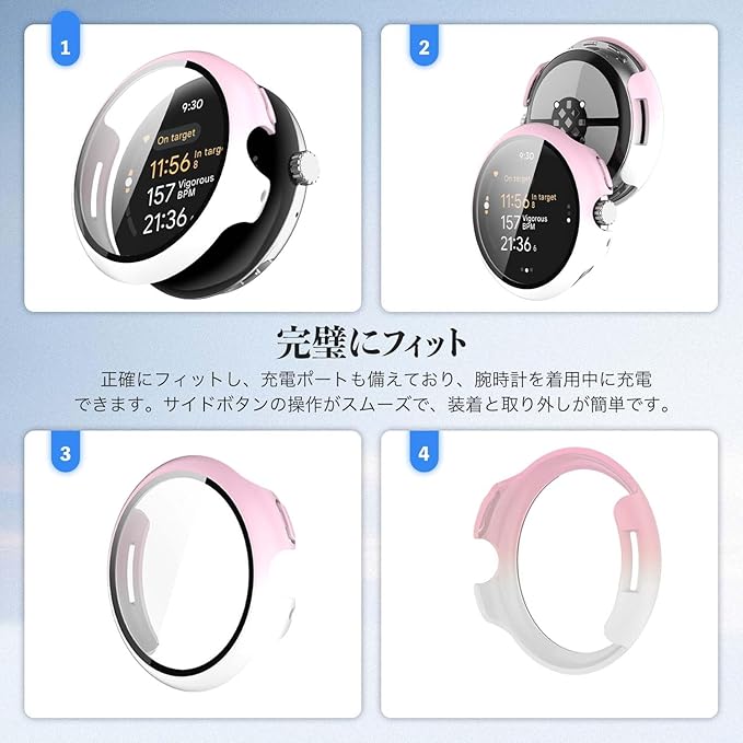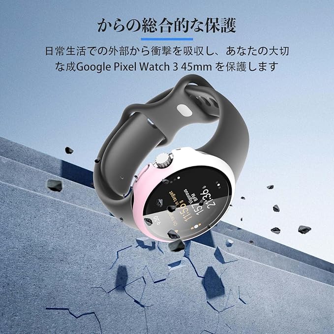 Google Pixel Watch 3 45mm 用 カバー ケース アップルウォッチ保護カバー ガラスフィルム 一体型 防水 防塵【HUKWIMO】 3D全面保護 指紋防止 HD高透過率 傷に強い 極薄 撥水撥油 反射低減 Google Pixel Watch 3 41mm / Pixel Watch 2 対応 (ピンク+ホワイト) a
