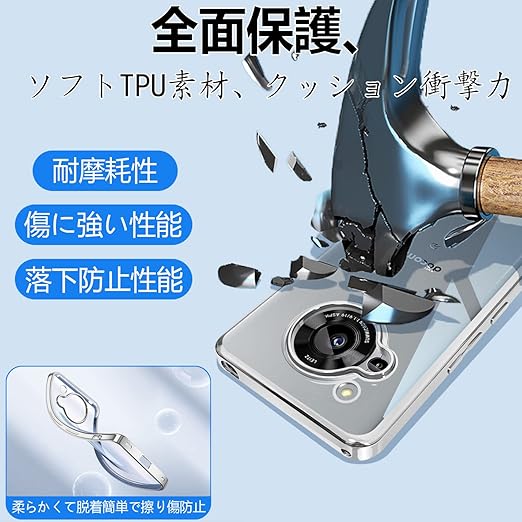 AQUOS R7 ケース SH-52C クリア 透明 ガバー スマホケース 耐衝撃 TPU 薄型 シリコン スリム 擦り傷防止 黄変防止 メッキ加工 ストラップホール付き(シルバー) a
