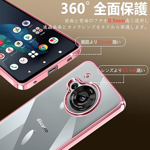 AQUOS R7 ケース SH-52C クリア 透明 ガバー スマホケース 耐衝撃 TPU 薄型 シリコン スリム 擦り傷防止 黄変防止 メッキ加工 ストラップホール付き(ローズゴールド) a