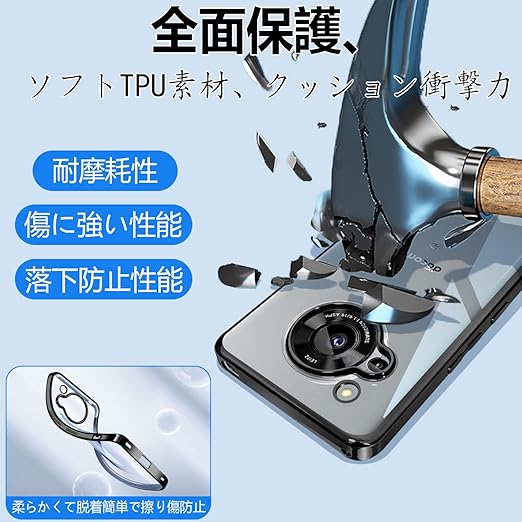 AQUOS R7 ケース SH-52C クリア 透明 ガバー スマホケース 耐衝撃 TPU 薄型 シリコン スリム 擦り傷防止 黄変防止 メッキ加工 ストラップホール付き(ブラック) a
