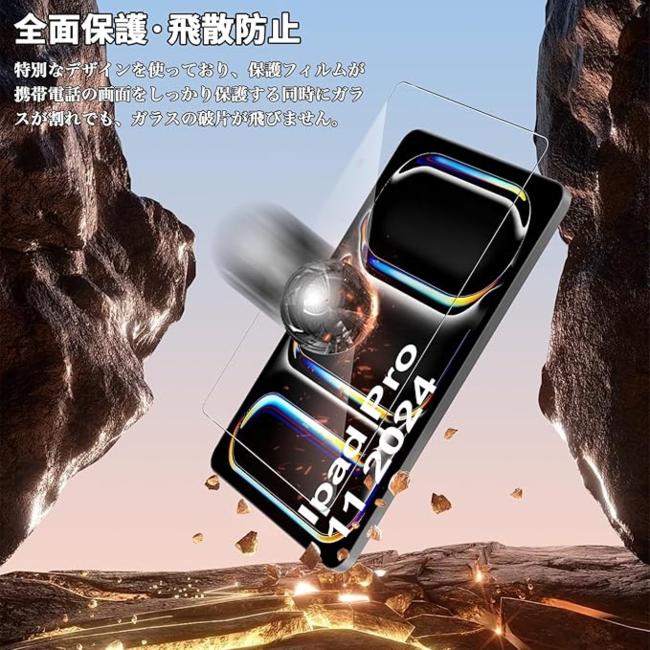 For Ipad Pro 11 第5世代 ガラスフィルム 2024 強化ガラス 高透過率 高感度タッチ 硬度9H 指紋防止 Greerass 気泡防止 撥水撥油 耐衝撃 貼り付け簡単 液晶保護 超薄飛散防止 Ipad Pro 11インチ 2024 保護フィルム a