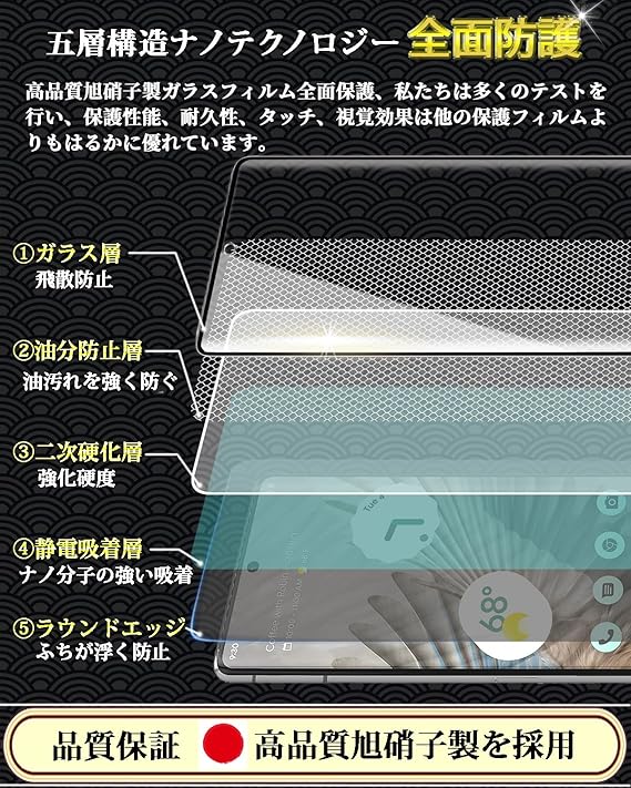 Google Pixel 7 Pro ガラスフィルム 指紋認証対応 Google Pixel 7 Pro 全面保護フィルム 日本旭硝子製素材 9H硬度 指紋防止 飛散防止 気泡ゼロ 干渉しない 貼り付け簡単 グーグル ピクセル 7 Pro 強化ガラス 液晶保護フィルム【6.7インチ-1枚セット】 a