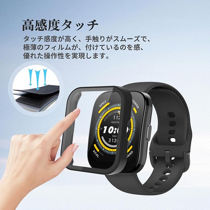 Amazfit BIP 5 用 カバー ケース アップルウォッチ保護カバー ガラスフィルム 一体型 防水 防塵 フィルム 保護フィルム【HUKWIMO】 3D全面保護 指紋防止 HD高透過率 傷に強い 気泡ゼロ 極薄 撥水撥油 反射低減 スクリーンプロテクター Amazfit BIP 5 対応 (ブラック) a
