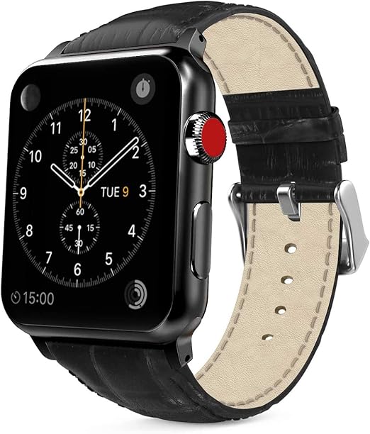 MaKTech レザーバンドワニのセクションパターンと互換性があるApple Watch Series 10/9/Ultra 2/SE/8/7[2024] (46mm/45mm/44/49mm,ブラック)1