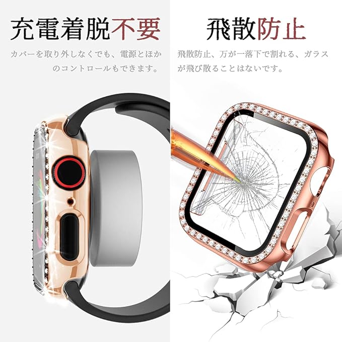 Miimall【PCケース+フイルム 2イン1】対応Apple Watch 9/8 41mm/7 41mm専用ケース ラインストーン付け アップルウォッチシリーズ 9/8 2022カバー シート 強化ガラス PC材質 擦り傷防止 防衝撃 Apple Watch 7 保護カバー フイルム(41mm|ローズゴールド) a