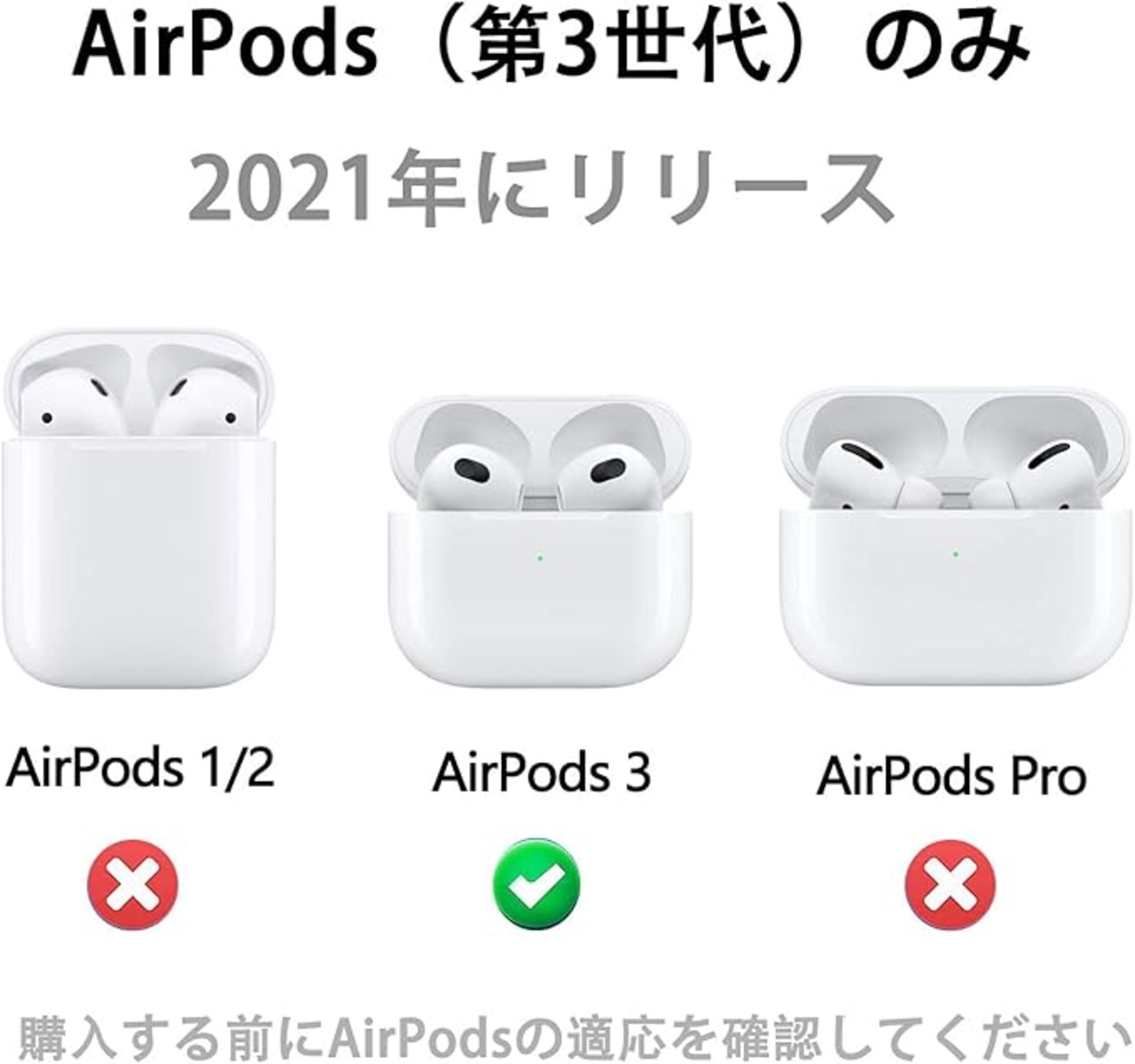 互換性:AirPods 3(2021年にリリース)と互換性があり、ワイヤレスイヤホンはケーシングを取り外さずに充電でき、非常に簡単に使用できます。
