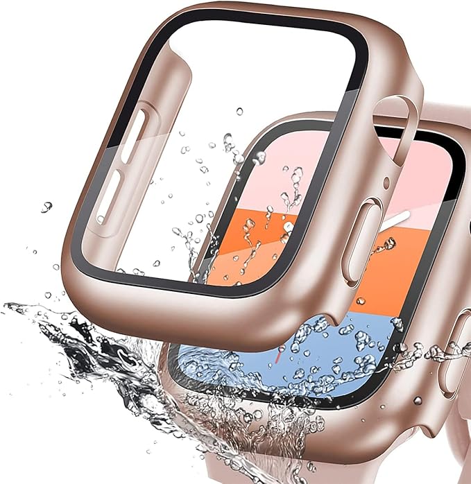DIKESHGU for Apple Watch防水ケース series6/SE/5/4 44mm/40mm アップルウォッチ保護カバー ガラスフィルム 一体型 PC素材 タッチ感良好 全面保護 装着簡単 耐衝撃 高透過率 指紋防止 傷防止(ローズゴールド,40mm) a