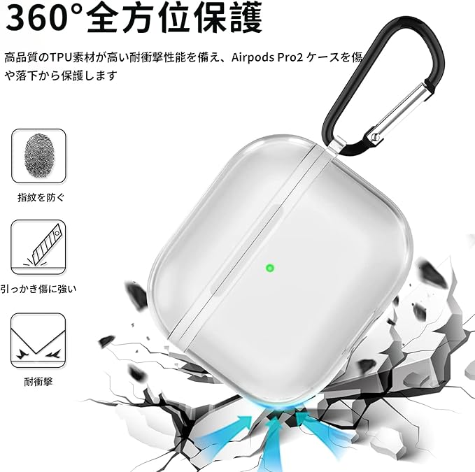 【全面保護】ケースは高品質の柔軟なTPU素材で作られており、触り心地が良いだけでなく、優れた保護力を発揮します。お使いのAirPodsを落下による衝撃や擦り傷からしっかり保護します。360°シームレスで包んでいる、本体をよく適当に置くことができます。