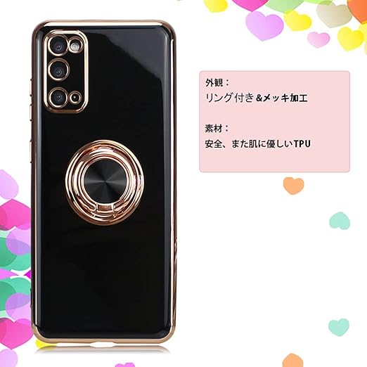 JOOBOY Galaxy s22 用 ケース ギャラクシー s22 5G 用 ケース リング付き メッキ加工 レンズ保護 tpu ソフト ストラップホール付き 耐衝撃 スリム おしゃれ スマホケース 携帯カバー ギャラクシーS22 用 カバー (Galaxy S22, ブラック) a